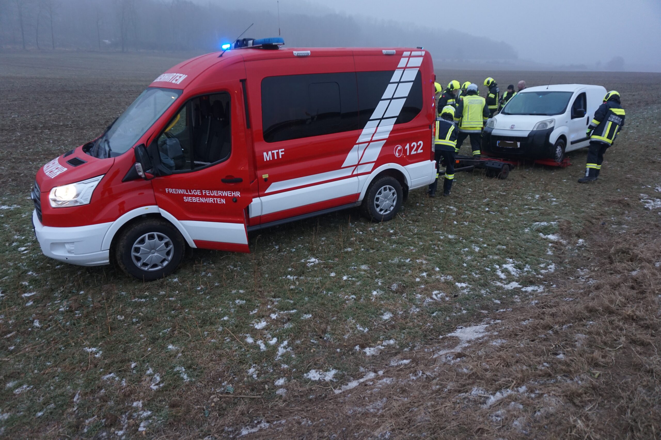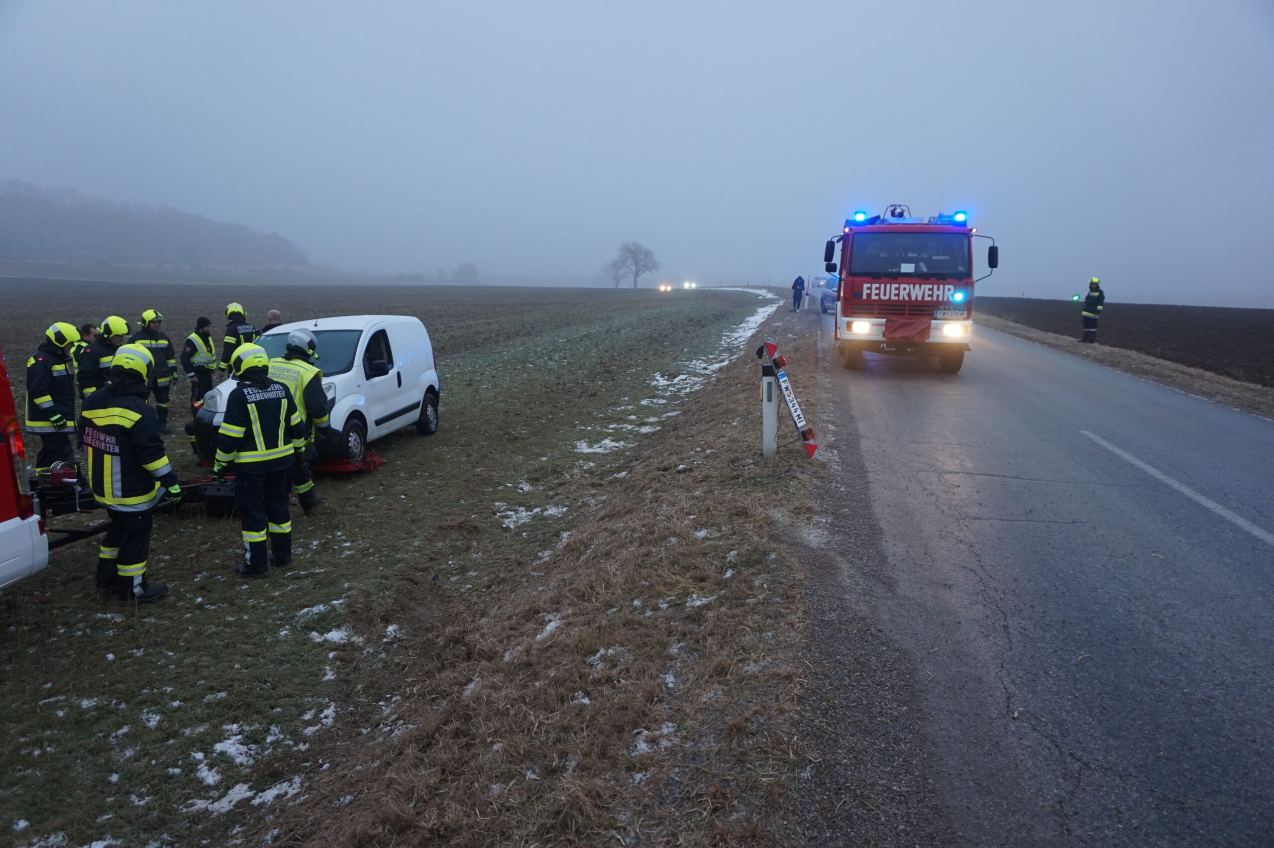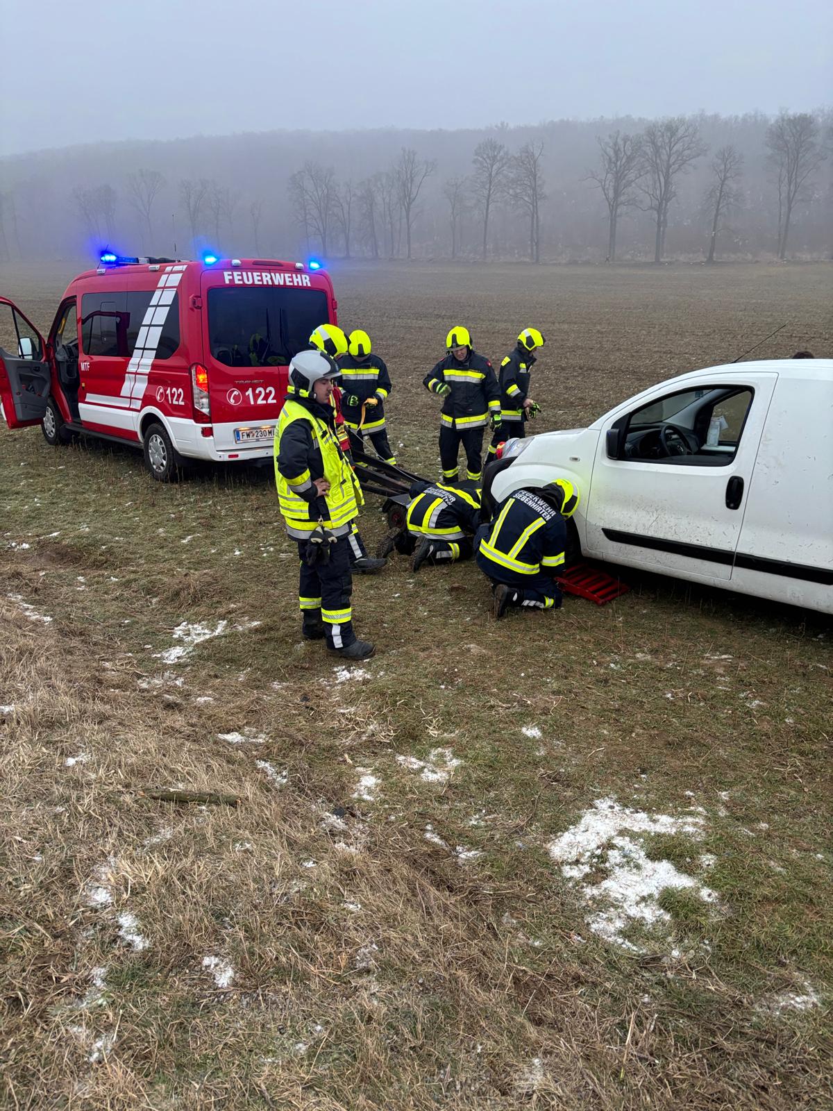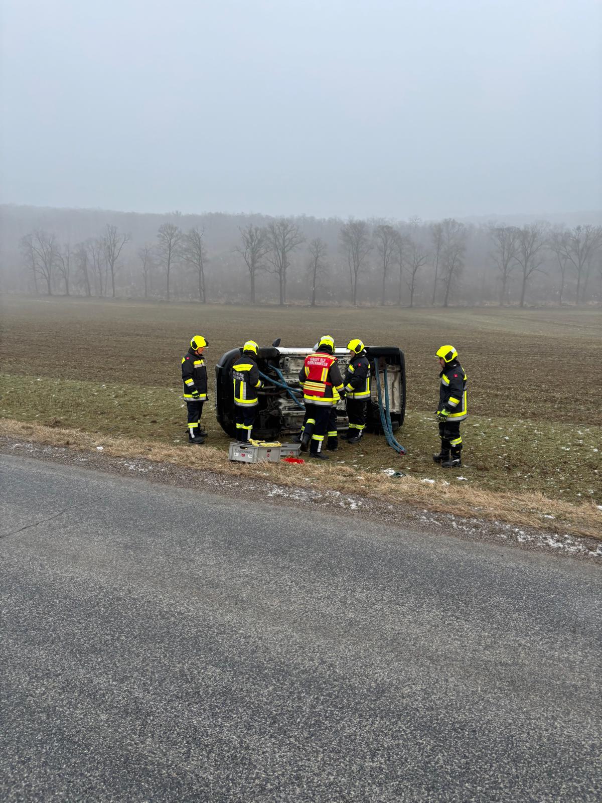 Am 23.01.2026 wurden wir zu einer Fahrzeugbergung bei der Waldstraße gerufen. Ein PKW kam von der Fahrbahn ab und blieb seitlich in einem angrenzenden Feld liegen. Beim Eintreffen war keine Person im Fahrzeug eingeschlossen.